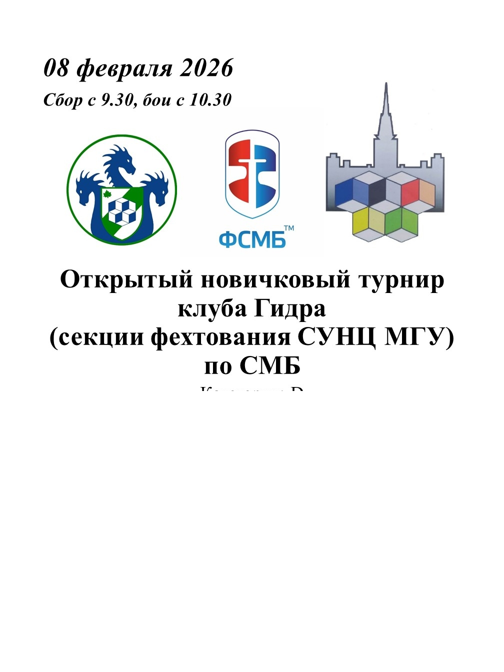 Турнир состоится в Вс 08.02.26 в СУНЦ МГУ по адресу г. Москва, ул. Кременчугская, д. 11 (М. Славянский бульвар или Давыдково)