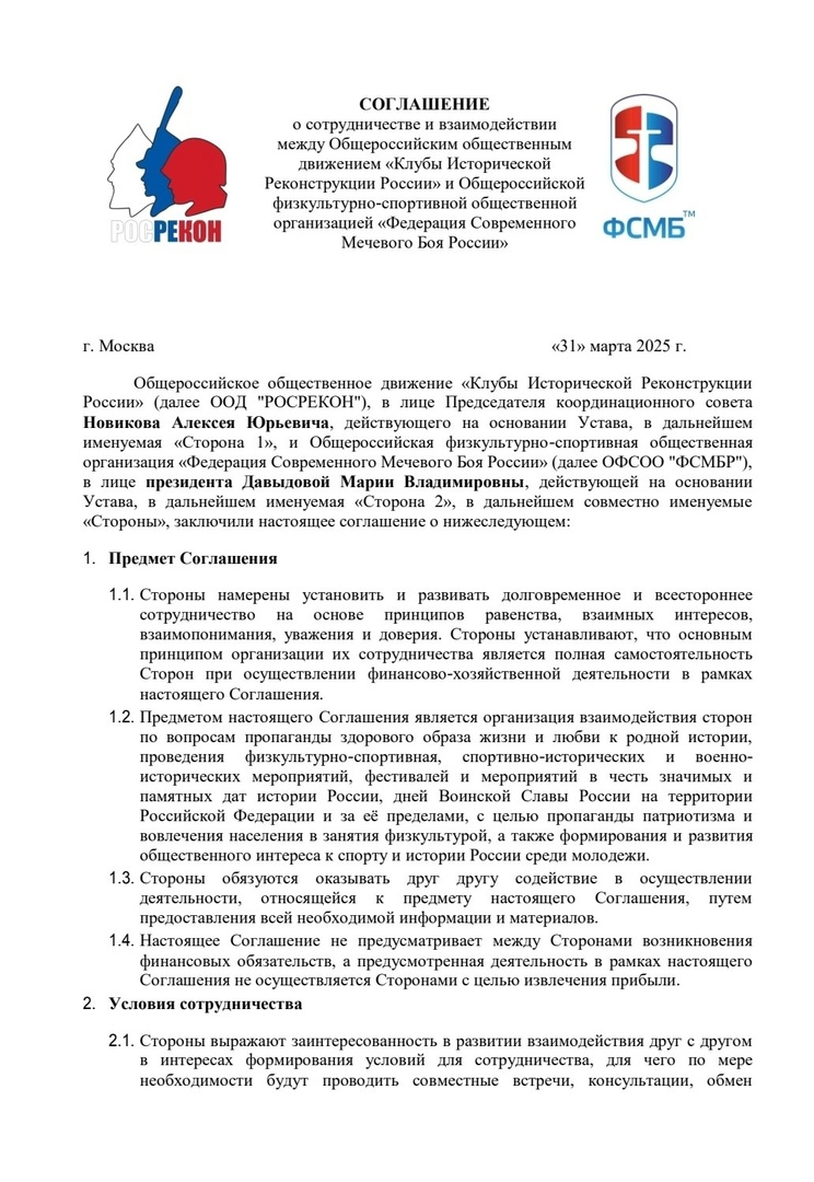 Федерация Современного Мечевого Боя России и ООД «Клубы Исторической Реконструкции России»!
