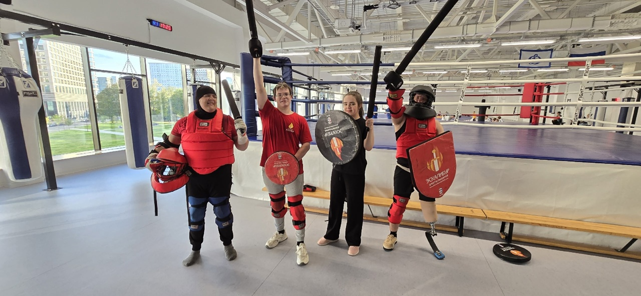 В Академии спорта ДИНАМО в Москве проходит работа нашей адаптивной группы по Современному Мечевому Бою (СМБ). Здесь тренируются подростки и взрослые с ДЦП, ПОДА и ампутациями — участники Лиги «С» и Лиги «О».