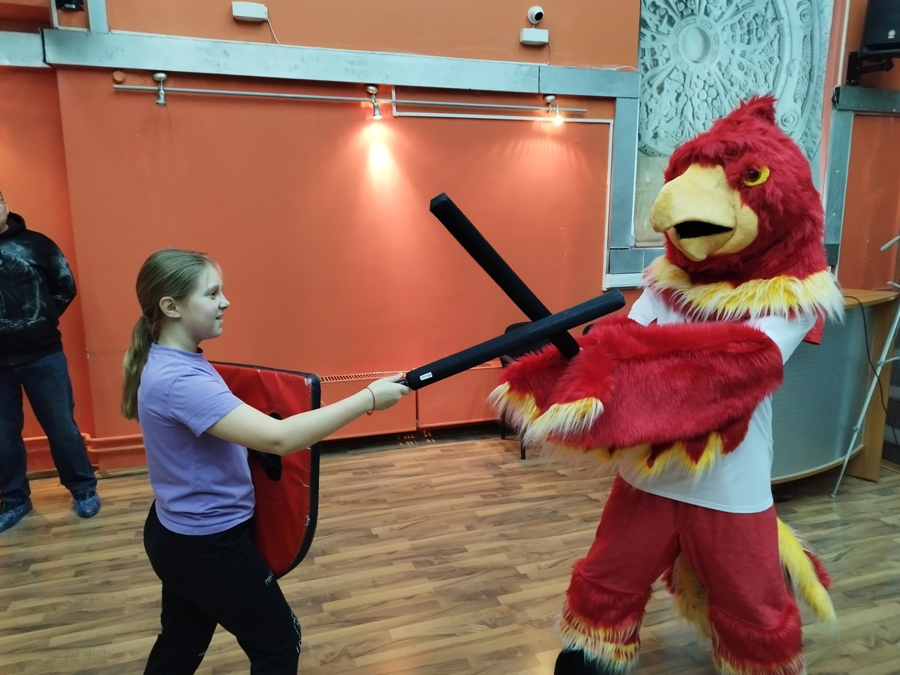Не обошлось и без нашего талисмана «Феникса», который создавал хорошее настроение на протяжении всего мастер-класса и даже принимал участие в поединках.