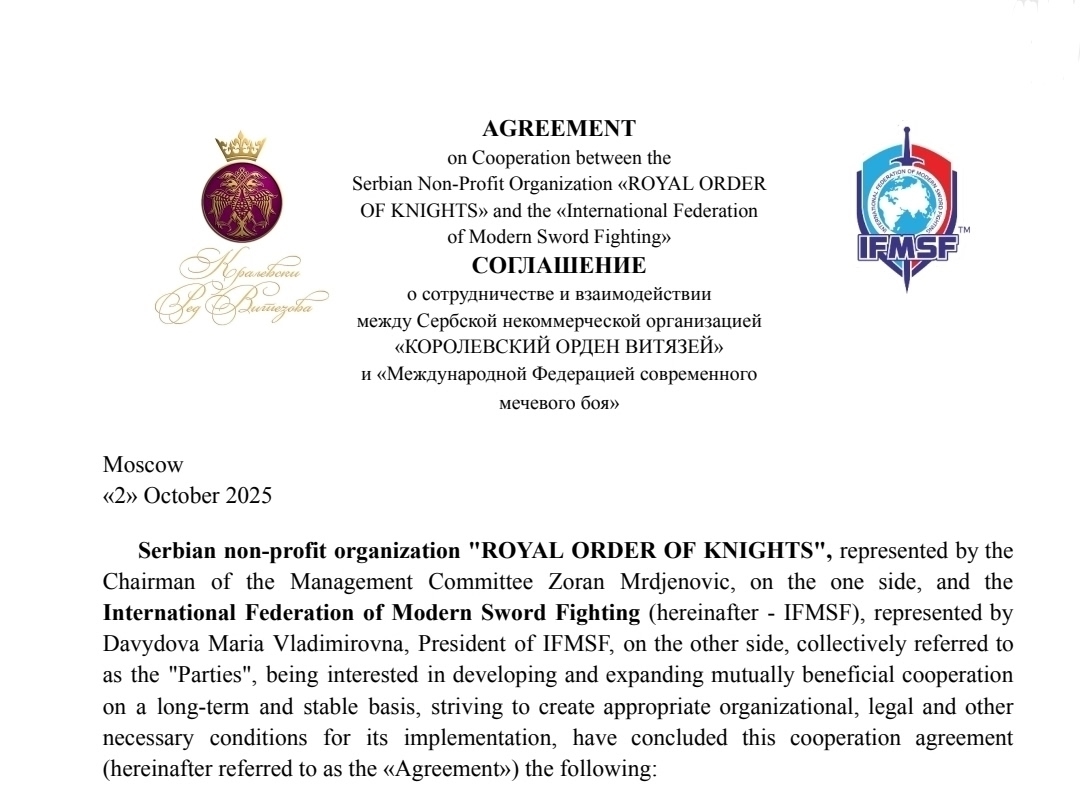 ⭐️ Сербской некоммерческой организацией "КОРОЛЕВСКИЙ ОРДЕН ВИТЯЗЕЙ", в лице председателя Управляющего Комитета Зорана Мрдженовича, и