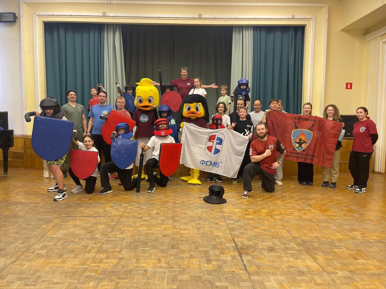 Рассказали немного истории нашего спорта, о его масштабах, турнирах. Показали основные техники боя и провели массовые бои! Дети начали сразу, а стеснительные папы подключились немного позже и помещение сразу наполнилось радостными эмоциями семейных разборок с мечом🤗