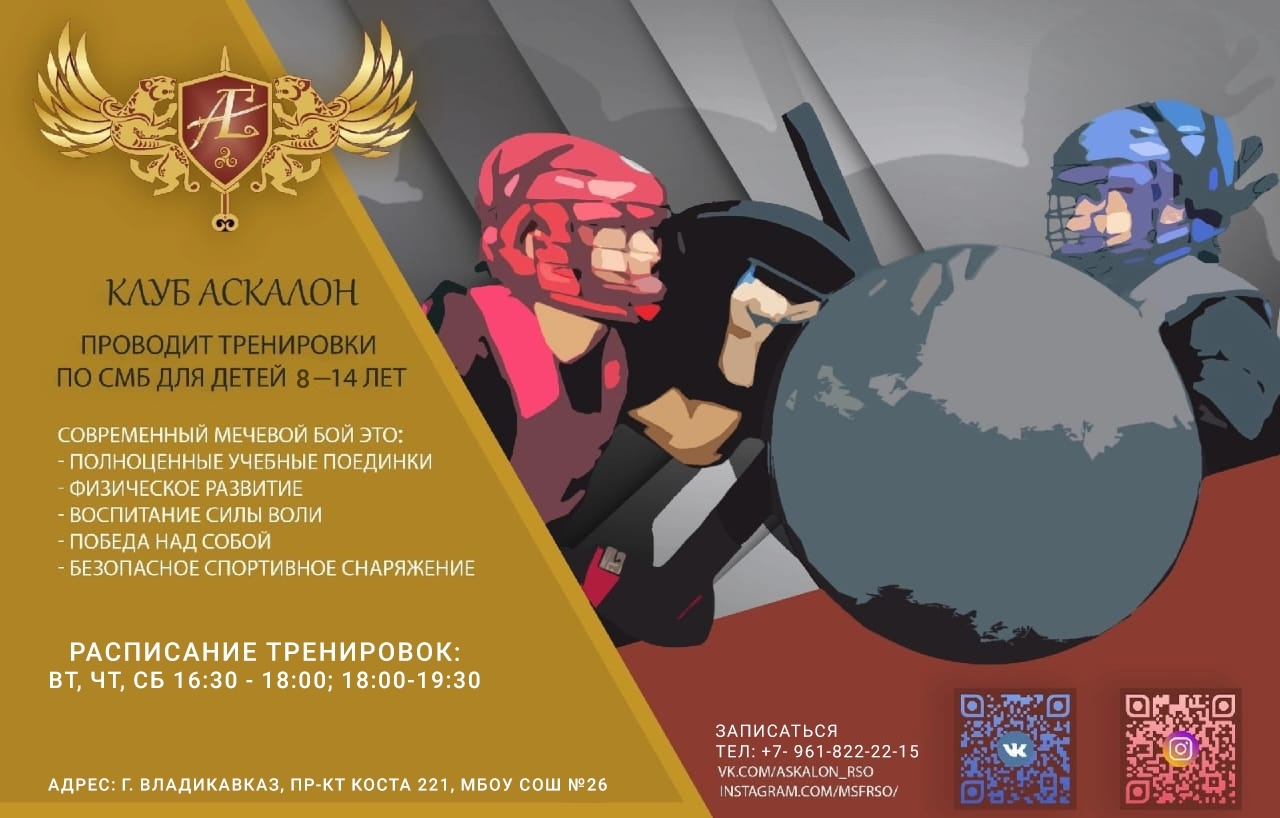 ⚔ Клуб Современного мечевого боя «Аскалон» объявляет набор детей в возрасте от 8 до 14 лет.