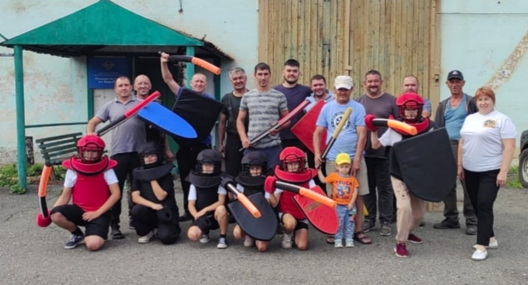 8 июля 2025 г. в рамках проекта "Щит и меч Кузбасса" воспитанники клуба СМБ "Слава казачья" провели мастер-класс по современному мечевому бою для дежурного караула номер 3 ГКУ (Агентство по защите населения и территории Кузбасса) ПЧ номер 8 и сотрудников ООО "Армада".
