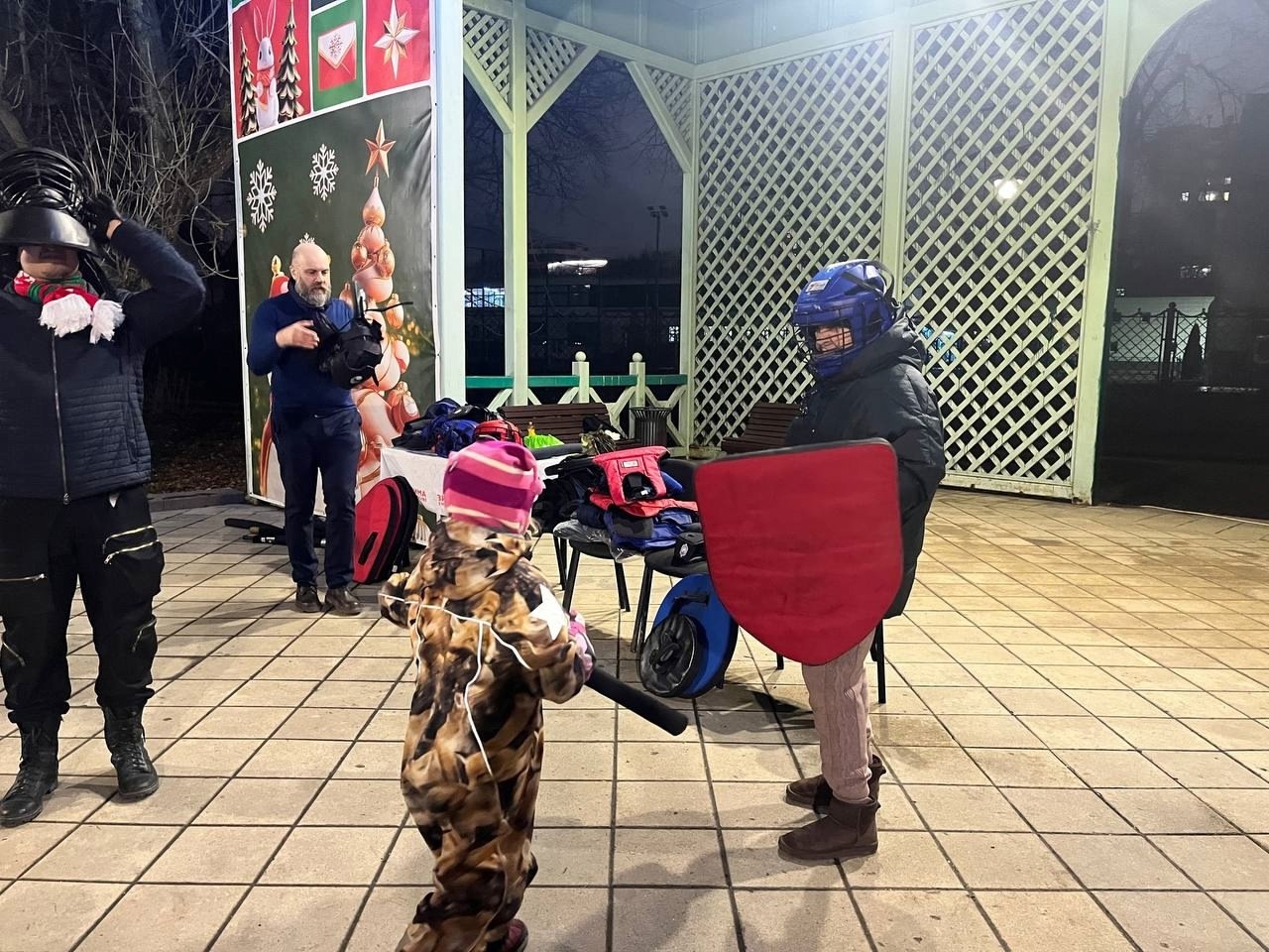 Согласован нам был, что достаточно символично, заключительный временной слот, что означало, что мастер-класс скорее всего посетит совсем немного людей, как-никак вечер воскресенья. Однако, несмотря на достаточно поздний час для физических активностей, к нам заглянуло много родителей с маленькими детьми, которые с удовольствием опробовали на себе ратное дело современных рыцарей, а кроме того, собрав большую ватагу Варягов, мы провели много спаррингов и устроили массовые бои!