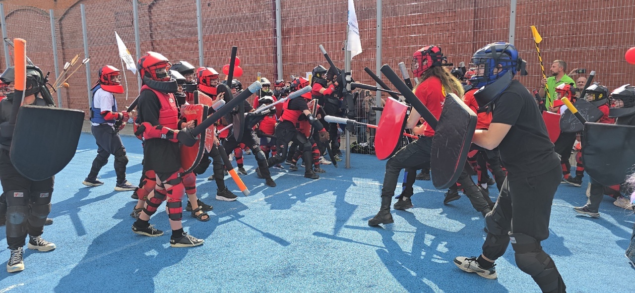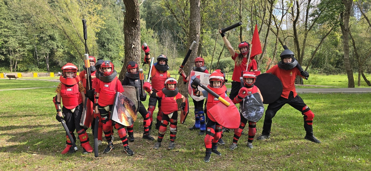 Сначала бои проходили внутри баскетбольной коробки, что имитировало строевые битвы в боевом коридоре средневекового замка, а во второй половине маневров, наши витязи и рыцари вырвались на простор - в леса и поля, где активно маневрируя отрабатывали множество тактических схем😊