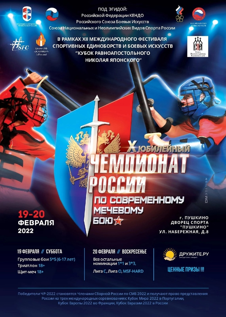 10-й Юбилейный ЧЕМПИОНАТ РОССИИ по СМБ 2022 состоится 19 и 20 февраля в г. Пушкино (МО), по адресу: ул. Набережная, д. 8, Дворец Спорта "Пушкино"