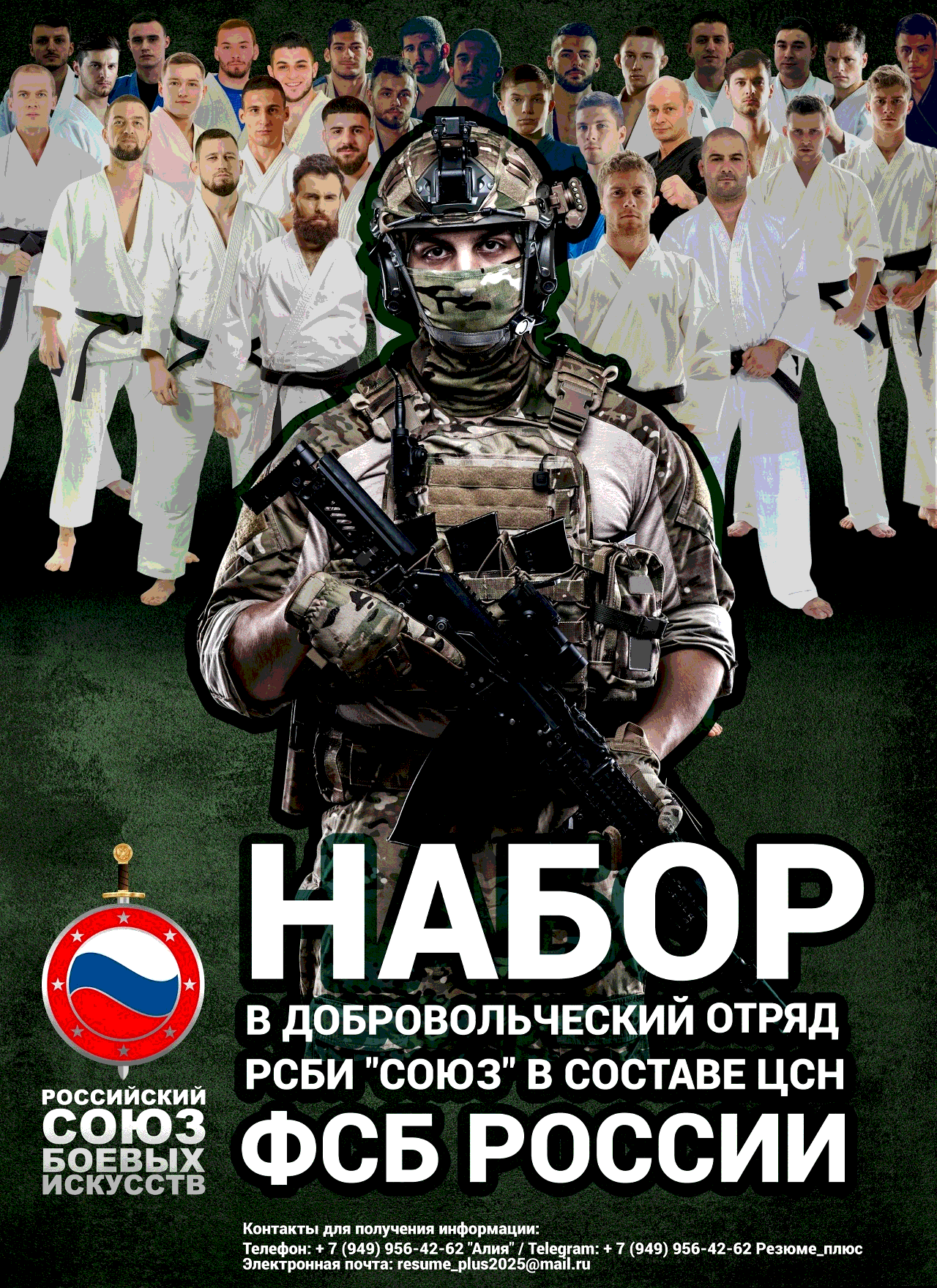 Напомним, согласно поручению Сопредседателей РСБИ на отчётно-выборной Конференции РСБИ объявлен дополнительный набор на военную службу в состав добровольческого отряда РСБИ «СОЮЗ» из представителей федераций – членов РСБИ.